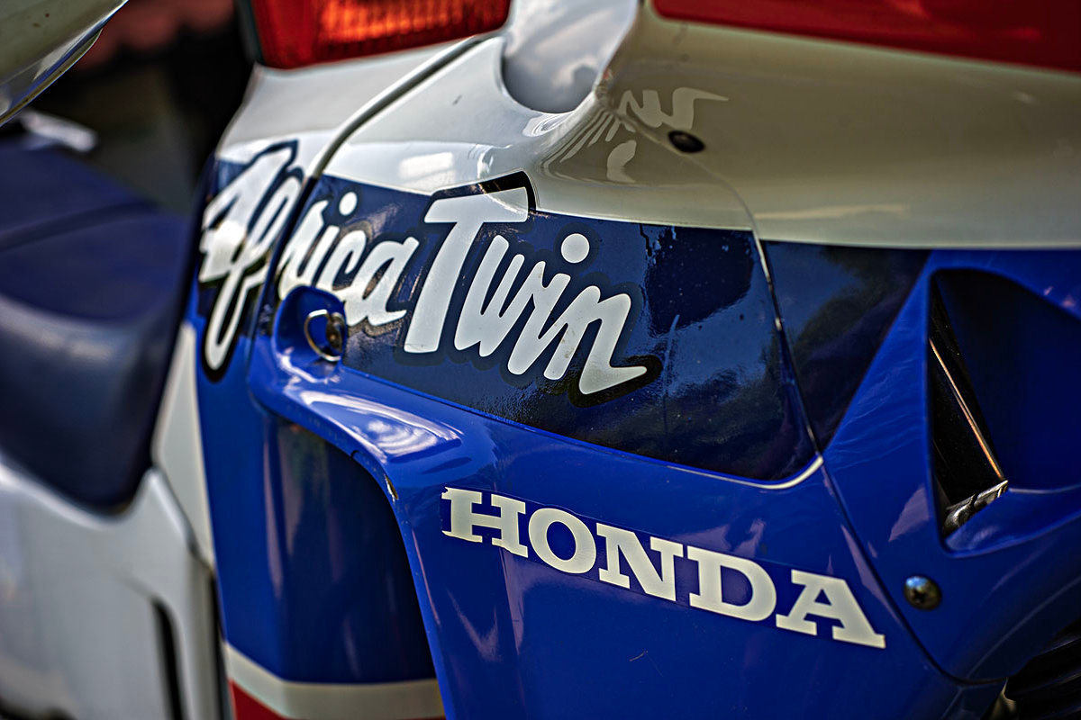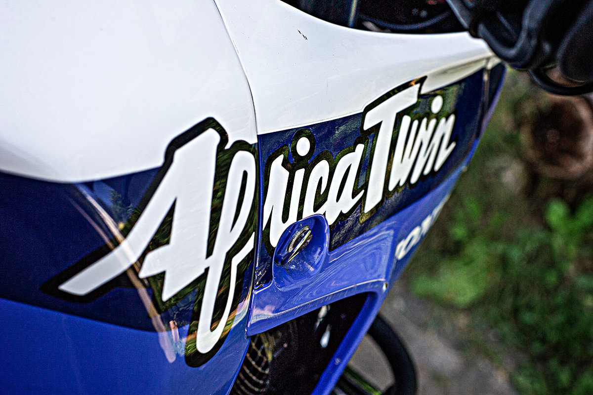 Une Honda Africa Twin – la fameuse RD03 – de juin 1990, restaurée.